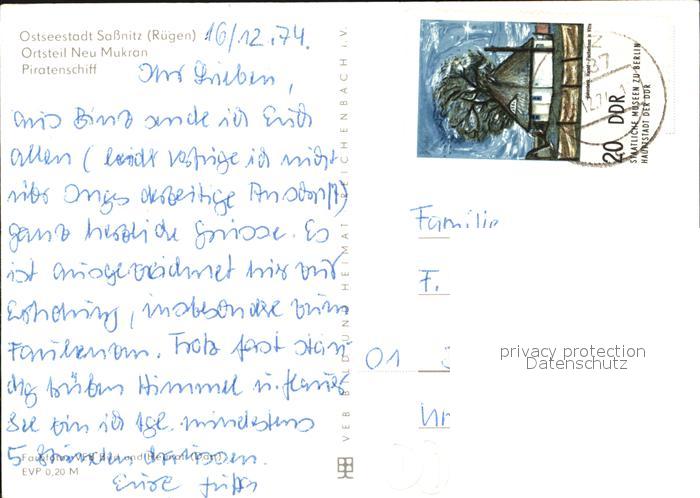 72443172 alte Postkarte Sassnitz Ostseebad Ruegen Piratenschiff Kajuete postalisch gelaufen Erhaltung siehe scans KatCode: 11110013061035