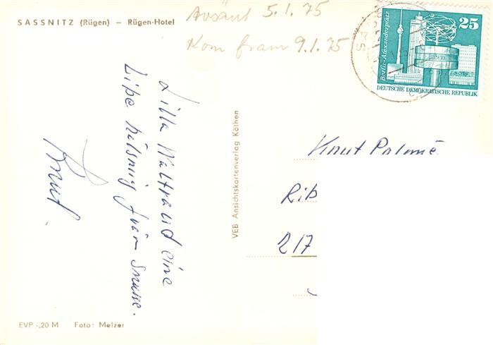 73872206 alte Postkarte Sassnitz Ostseebad Ruegen Ruegen Hotel postalisch gelaufen Erhaltung siehe scans [FriedD77] KatCode: 11110013061035