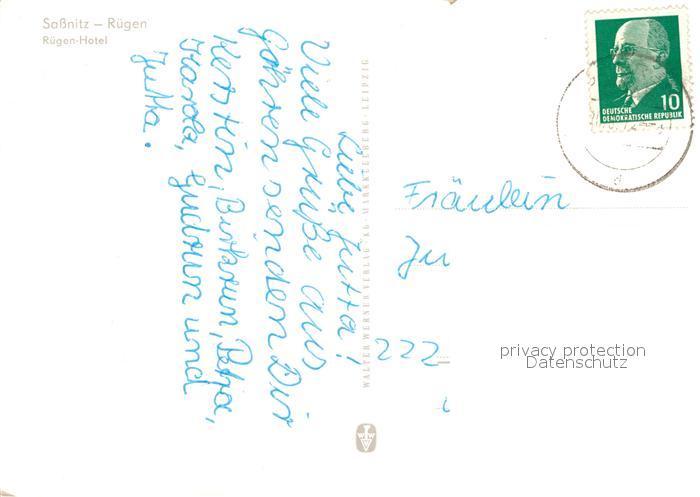 73055812 alte Postkarte Sassnitz Ostseebad Ruegen Ruegen Hotel postalisch gelaufen Erhaltung siehe scans [NatalD47] KatCode: 11110013061035