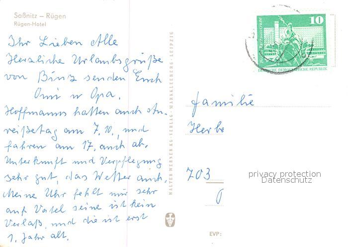 73047914 alte Postkarte Sassnitz Ostseebad Ruegen Ruegen Hotel postalisch gelaufen Erhaltung siehe scans [KathaD81] KatCode: 11110013061035