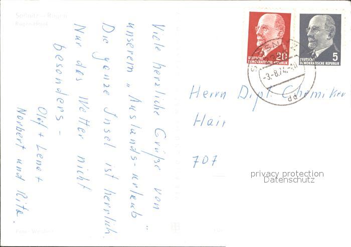 72114503 alte Postkarte Sassnitz Ostseebad Ruegen Ruegen Hotel postalisch gelaufen Erhaltung siehe scans KatCode: 11110013061035