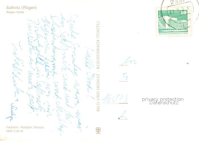 73740070 alte Postkarte Sassnitz Ostseebad Ruegen Ruegen Hotel postalisch gelaufen Erhaltung siehe scans [FriedD77] KatCode: 11110013061035