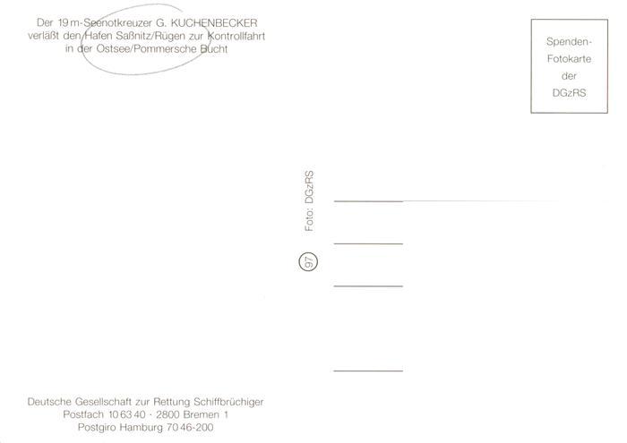 73949822 Sassnitz Ostseebad Ruegen Seenotkreuzer G. Kuchenbecker Hafen postalisch nicht gelaufen Erhaltung siehe scans [FriedD77] KatCode: 11110013061035