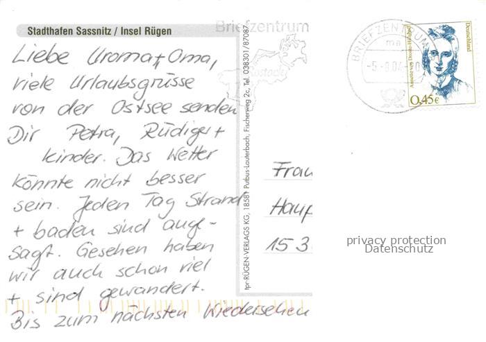74020656 alte Postkarte SAssNITZ Ostseebad Ruegen Stadthafen Hafenmeile U-Boot-Museum Fischereimusem Wasservogel postalisch gelaufen Erhaltung siehe scans [FriedD77] KatCode: 11110013061035