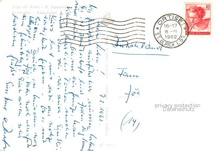 old postcard Sassolungo Langkofel Seiseralm Langkofel postalisch gelaufen Erhaltung siehe scans [PaolaD17]