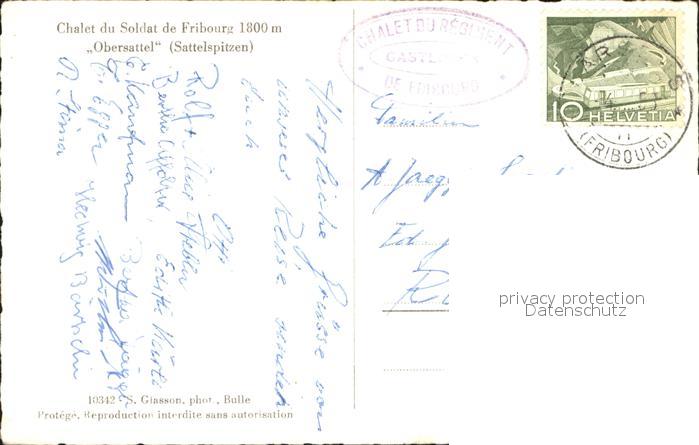 11853504 alte Postkarte Sattelspitzen Boltigen Chalet du Soldat de Fribourg postalisch gelaufen Erhaltung siehe scans KatCode: 11470410130064