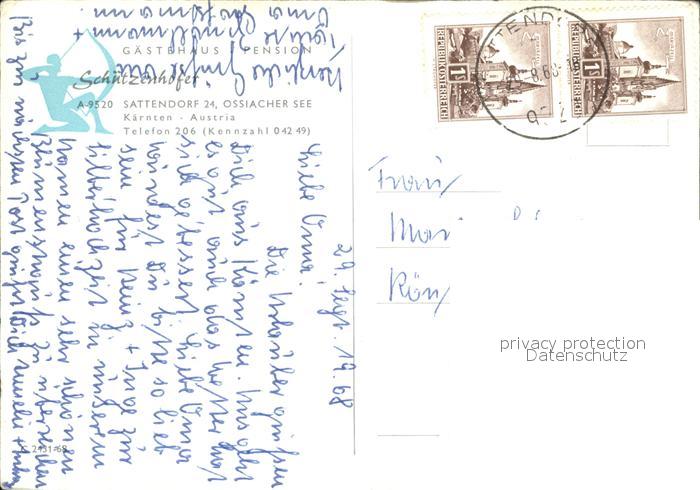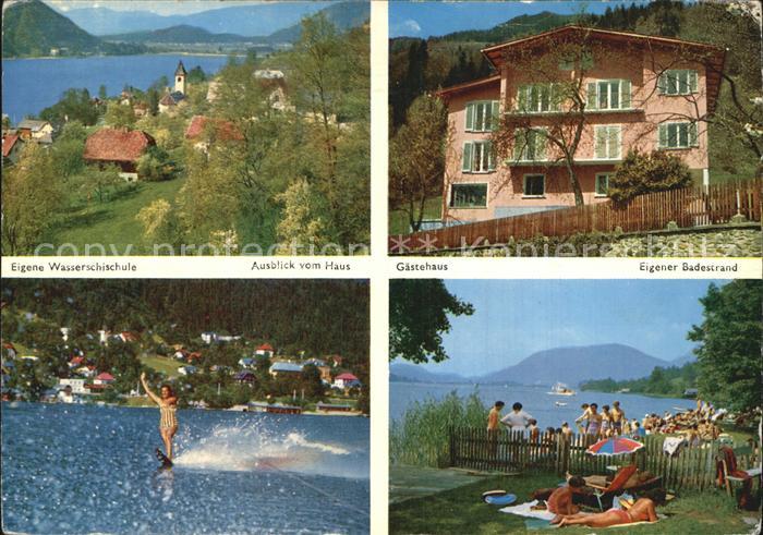 72494553 alte Postkarte Sattendorf Ossiacher See Wasserskischule Gaestehaus postalisch gelaufen Erhaltung siehe scans KatCode: 11390