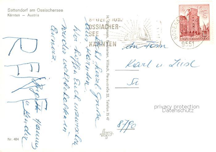 73855434 alte Postkarte Sattendorf Ossiachersee Panorama Teilansichten Wasserfall postalisch gelaufen Erhaltung siehe scans [WerneD78] KatCode: 11390