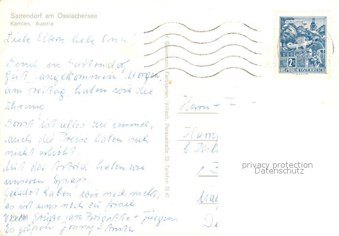 73304371 alte Postkarte Sattendorf Panorama gegen Julische Alpen Motorboot Wasserfall postalisch gelaufen Erhaltung siehe scans [FriedD77] KatCode: 11390
