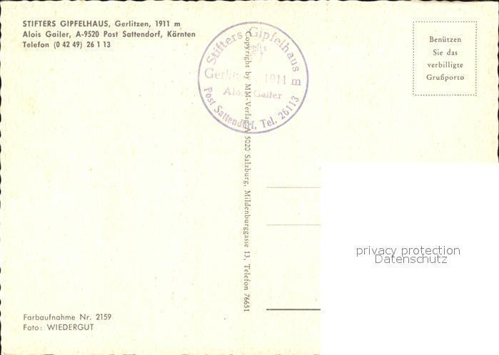 72595776 Sattendorf Stifters Gipfelhaus Gerlitzen Alpenpanorama postalisch nicht gelaufen Erhaltung siehe scans [FriedD77] KatCode: 11390