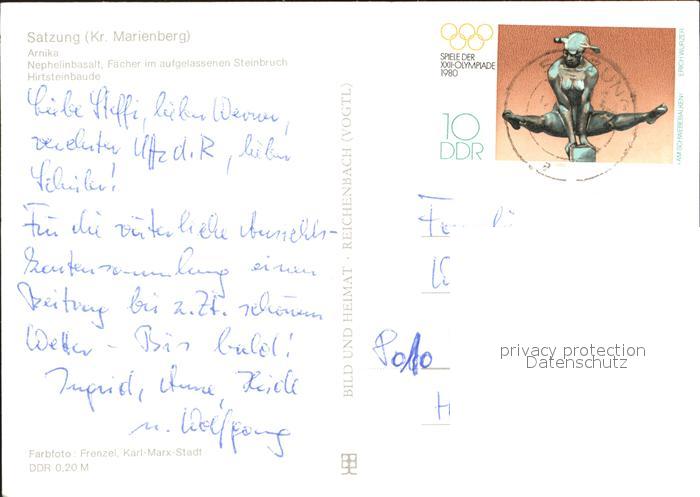72368810 alte Postkarte Satzung Arnika Nephelinbasalt Faecher Hirtsteinbaude postalisch gelaufen Erhaltung siehe scans KatCode: 11110014181260