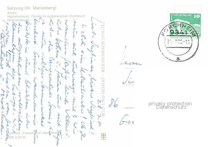 72647452 alte Postkarte Satzung Arnika Nephelinbasalt Faecher Hirtsteinbaude postalisch gelaufen Erhaltung siehe scans [WerneD78] KatCode: 11110014181260