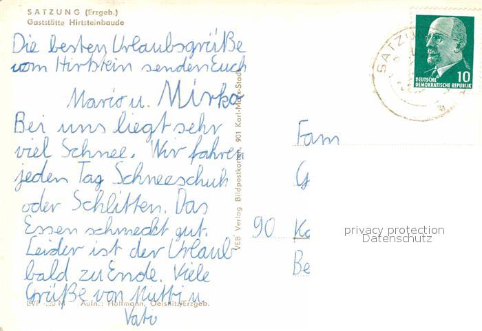 72727970 alte Postkarte Satzung Gaststaette Hirtsteinbaude im Winter postalisch gelaufen Erhaltung siehe scans [FriedD77] KatCode: 11110014181260