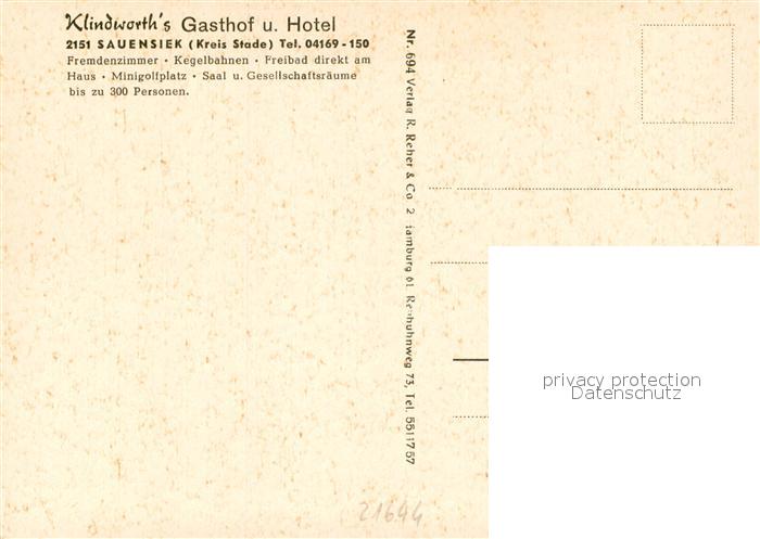 73651004 Sauensiek Klindworth’s Gasthof und Hotel Kegelbahn Restaurant Garten postalisch nicht gelaufen Erhaltung siehe scans [FriedD77] KatCode: 11110003359037