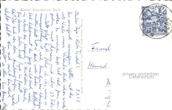 72431420 alte Postkarte Sauerbrunn Bad Teilansicht postalisch gelaufen Erhaltung siehe scans KatCode: 11390112010611