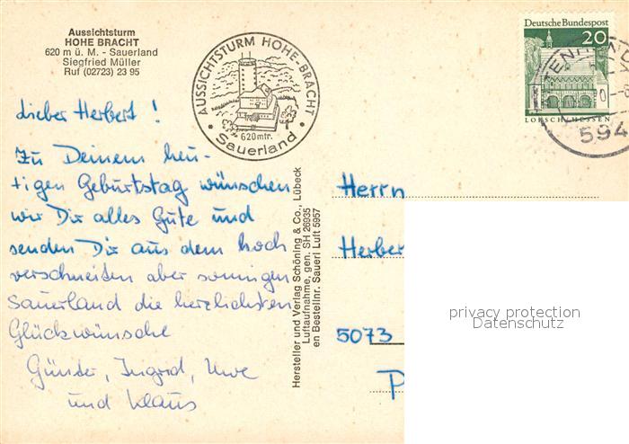 73023860 alte Postkarte Sauerland Aussichtsturm Hohe Bracht postalisch gelaufen Erhaltung siehe scans [WerneD78] KatCode: 11110005958040