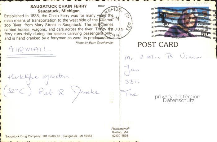 71965790 old postcard Saugatuck The Chain Ferry postalisch gelaufen Erhaltung siehe scans KatCode: 14140240000000