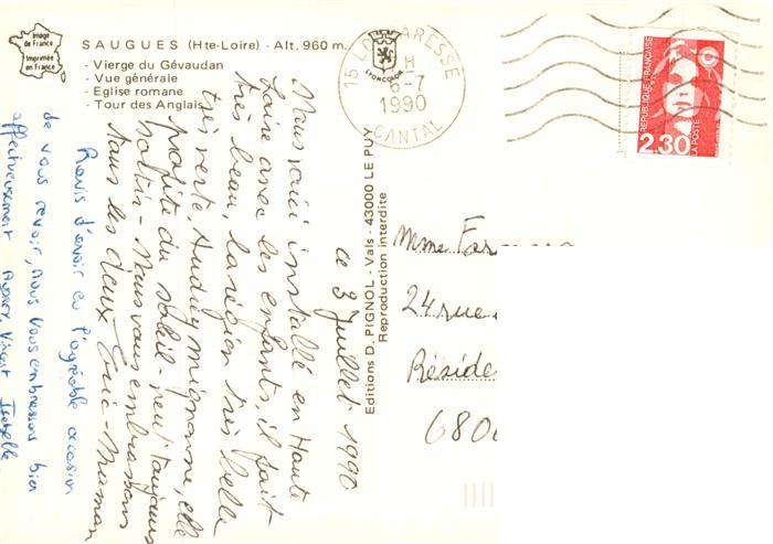 13947954 Saugues Vierge du Gévaudan vue générale Eglise romana Tour des Anglais postalisch gelaufen Erhaltung siehe scans [FriedD77] carte postale Frie Katcode 11170043143234