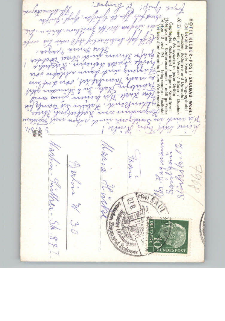 31155031 Saulgau Hotel Kleber postalisch nicht gelaufen KatCode: 11110008437100