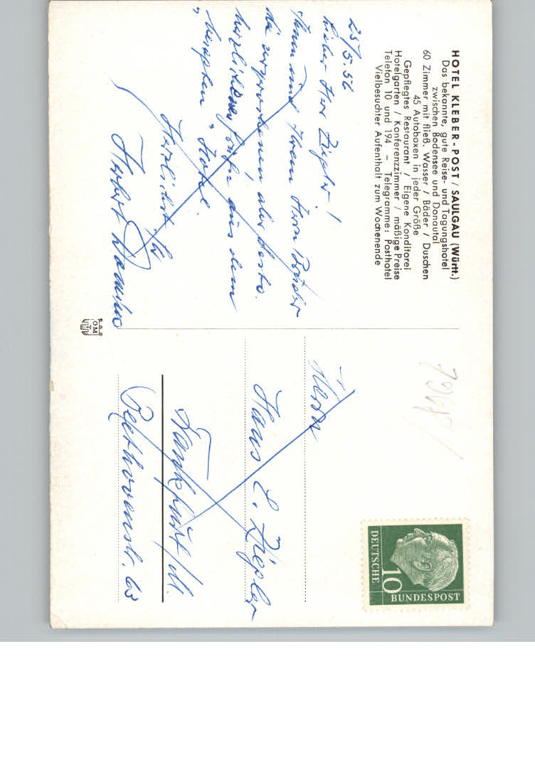 31155034 Saulgau Hotel Kleber postalisch nicht gelaufen KatCode: 11110008437100