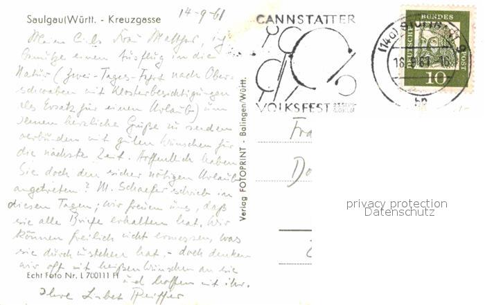 72791601 alte Postkarte Saulgau Kreuzgasse postalisch gelaufen Erhaltung siehe scans [AndreD76] KatCode: 11110008437100