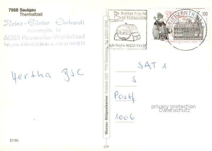 73735169 alte Postkarte Saulgau Thermalbad postalisch gelaufen Erhaltung siehe scans [LiesaD40] KatCode: 11110008437100