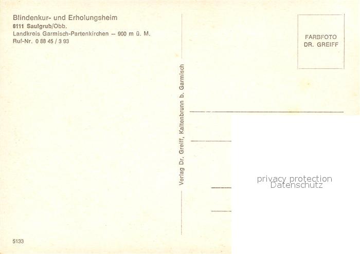 73062453 Saulgrub Blinden Erholungsheim postalisch nicht gelaufen Erhaltung siehe scans [KathaD81] KatCode: 11110009180129