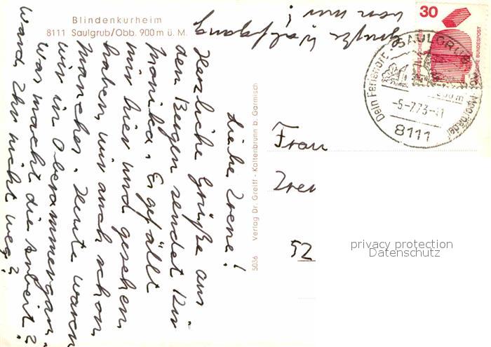 72845376 alte Postkarte Saulgrub Blindenkurheim postalisch gelaufen Erhaltung siehe scans [AndreD76] KatCode: 11110009180129