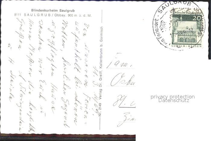 72129365 alte Postkarte Saulgrub Blindenkurheim postalisch gelaufen KatCode: 11110009180129