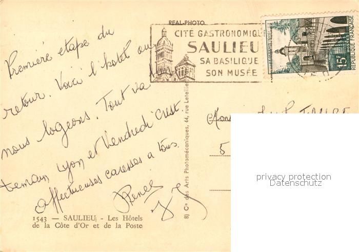 13561741 carte postale Saulieu Les Hotels de la Cote d’Or et de la Poste postalisch gelaufen Erhaltung siehe scans [WerneD78] KatCode: 11170021321584