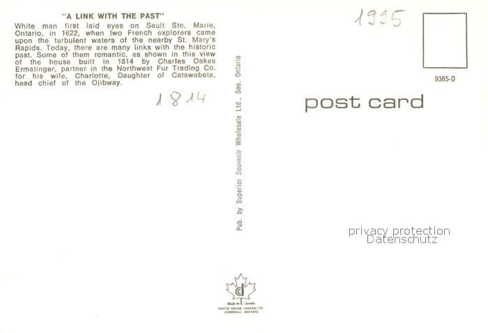 Sault Ste. Marie Ermatinger Old Stone House postalisch nicht gelaufen Erhaltung siehe scans [FriedD77]