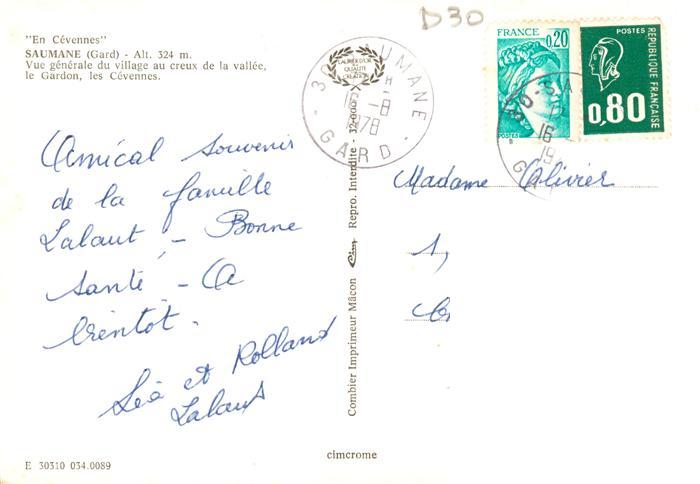 13944932 Saumane 30 Gard Vue générale du village au creux de la vallée le Gardon les Cévennes postalisch gelaufen Erhaltung siehe scans [FriedD77] carte postale Frie Katcode 11170030330310