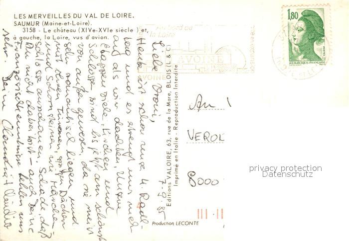 13584551 Saumur Fliegeraufnahme Chateau postalisch gelaufen Erhaltung siehe scans [LiesaD40] carte postale Lies Katcode 11170049349328
