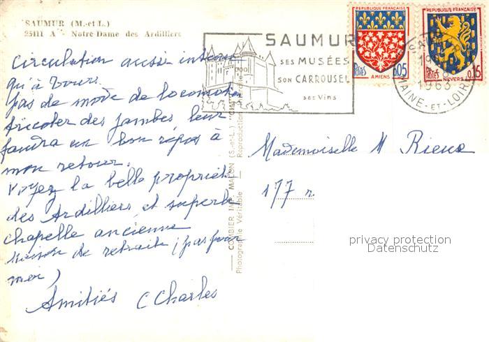 13561224 carte postale Saumur Fliegeraufnahme Notre Dame des Ardilliers postalisch gelaufen Erhaltung siehe scans [LiesaD40] KatCode: 11170049349328