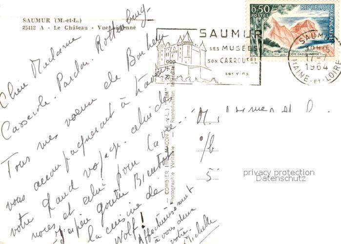 13161671 carte postale Saumur Le Chateau Vue aerienne postalisch gelaufen Erhaltung siehe scans [WerneD78] KatCode: 11170049349328