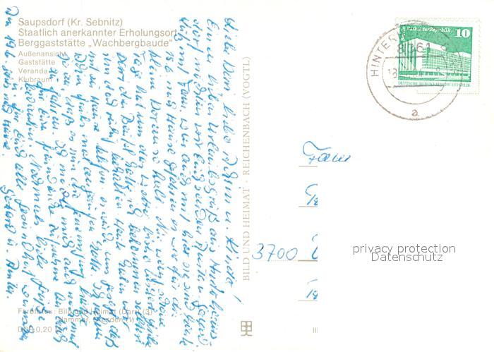 73574319 alte Postkarte Saupsdorf Berggaststaette Wachbergbaude Veranda Klubraum postalisch gelaufen Erhaltung siehe scans [FriedD77] KatCode: 11110014287180
