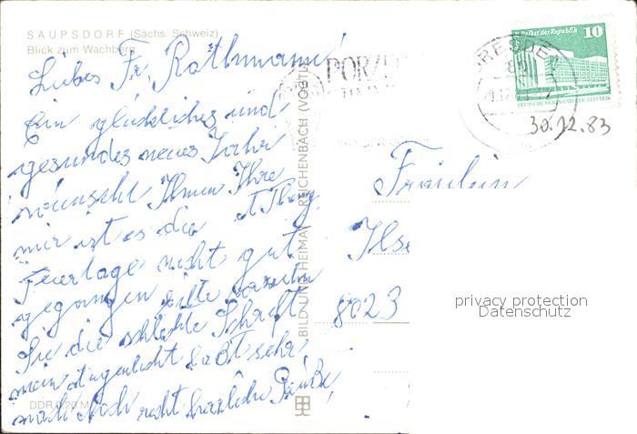 72473997 alte Postkarte Saupsdorf Ortsansicht mit Kirche Blick zum Wachberg postalisch gelaufen Erhaltung siehe scans KatCode: 11110014287180