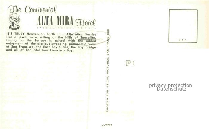 74153313 Sausalito California USA Continental Alta Mira Hotel Terrasse postalisch nicht gelaufen Erhaltung siehe scans [FriedD77] KatCode: 14140050000000