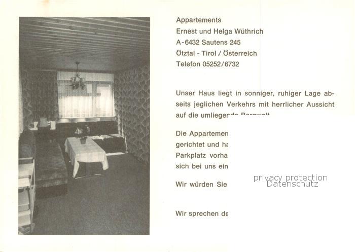 73721087 Sautens Appartements Wuethrich oetztaler Alpen postalisch nicht gelaufen Werbekarte (keine Postkarte) Erhaltung siehe scans [FriedD77] KatCode: 11390334070218