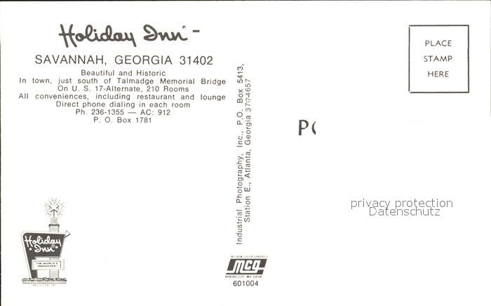 72314040 Savannah Georgia Holiday Inn postalisch nicht gelaufen Erhaltung siehe scans KatCode: 14140120000000
