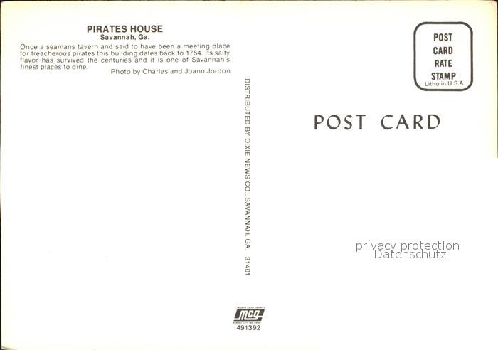 72279676 Savannah Georgia Pirates House postalisch nicht gelaufen Erhaltung siehe scans KatCode: 14140120000000