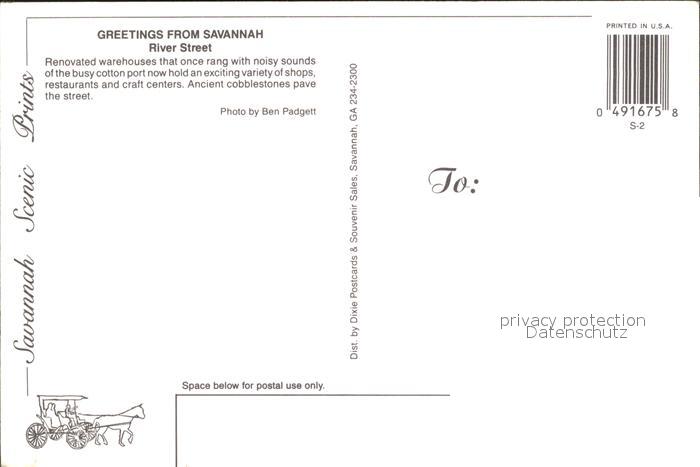 71820614 Savannah Georgia River Street Steamer Monument Sculpture postalisch nicht gelaufen KatCode: 14140120000000