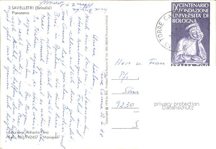 old postcard Savelletri Ansicht vom Meer aus Fischerboot postalisch gelaufen Erhaltung siehe scans
