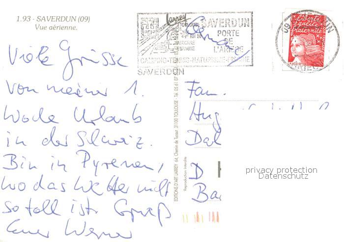 13742854 Saverdun 09 Vue aérienne postalisch gelaufen Erhaltung siehe scans [FriedD77] carte postale Frie Katcode 11170009209282