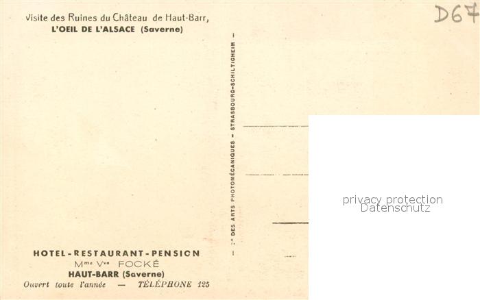 Saverne Bas Rhin Alsace Le Haut Barr Hotel postalisch nicht gelaufen Erhaltung siehe scans [WerneD78]