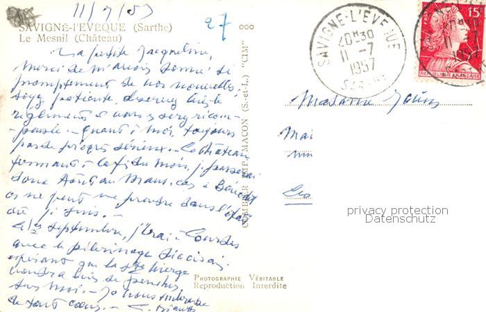 13815468 Savigne-l Eveque Le Mesnil Chateau postalisch gelaufen Erhaltung siehe scans [FriedD77] carte postale Frie Katcode 11170072372329