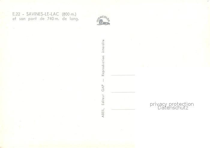 13548353 Savines-le-Lac et son pont Alpes postalisch nicht gelaufen Erhaltung siehe scans [FriedD77] KatCode: 11170005205164