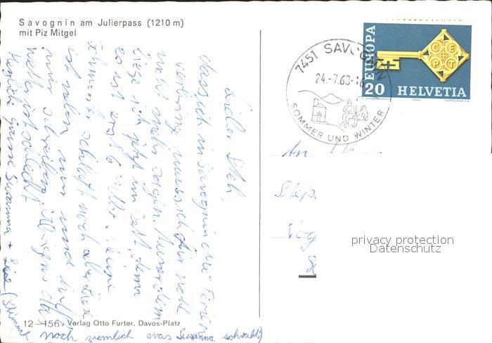 11651348 alte Postkarte Savognin Kirche mit Piz Mitgel postalisch gelaufen Erhaltung siehe scans KatCode: 11470100305966