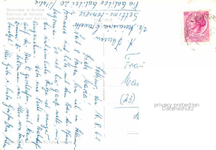 old postcard Savona Liguria Grotta di Bergeggi Isolotto Teatro Chiabrera Via Aurelia Porto e Grattacielo postalisch gelaufen Erhaltung siehe scans [WerneD78]
