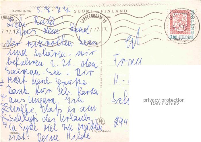 74017218 old postcard Savonlinna Soumi Nyslott Fliegeraufnahme postalisch gelaufen Erhaltung siehe scans [WerneD78] KatCode: 11160